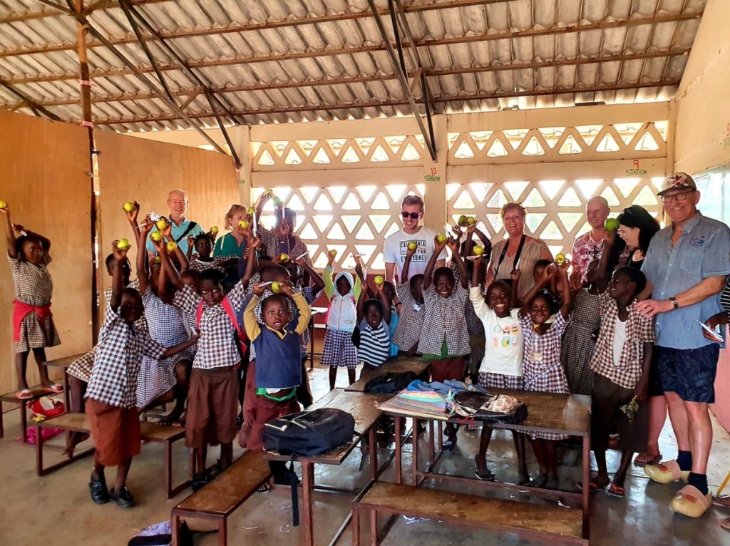 Dit zijn groepsfoto’s gemaakt tijdens het bezoek aan het schooltje van de excursie Village Life Tour met de bezoekende gasten.